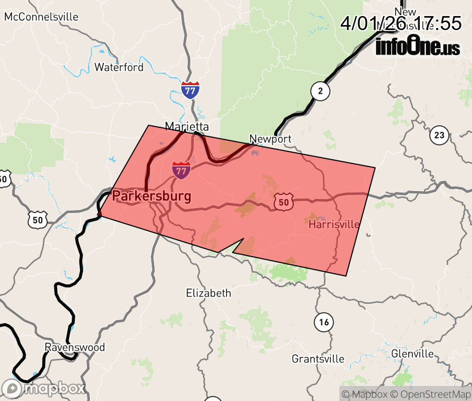 Canceled 4/1/26 6:13 PM Severe Thunderstorm Warning issued April 1 at 5:53PM EDT until April 1 at 6:45PM EDT by NWS Charleston WV SVRRLX The National Weather Service in Charleston West Virginia has issued a * Severe Thunderstorm Warning for... South central Washington County in southeastern Ohio... Southern Pleasants County in northwestern West Virginia... Central Ritchie County in northwestern West Virginia... Central Wood County in northwestern West Virginia... * Until 645 PM EDT. * At 553 PM EDT, a severe thunderstorm was located near Parkersburg, moving east at 35 mph. HAZARD...60 mph wind gusts and half dollar size hail. SOURCE...Radar indicated. IMPACT...Hail damage to vehicles is expected. Expect wind damage to roofs, siding, and trees. * Locations impacted include... Parkersburg, Belpre, Harrisville, Vienna, Williamstown, Pennsboro, Belmont, Washington, North Bend State Park, Lubeck, Boaz, Mineralwells, North Hills, Ellenboro, Cairo, Maxwell, Schultz, Pike, Davisville, and Highland. This includes the following highways... Interstate 77 in West Virginia between mile markers 170 and 186. Route 50 in West Virginia between mile markers 1 and 42. ![]() |