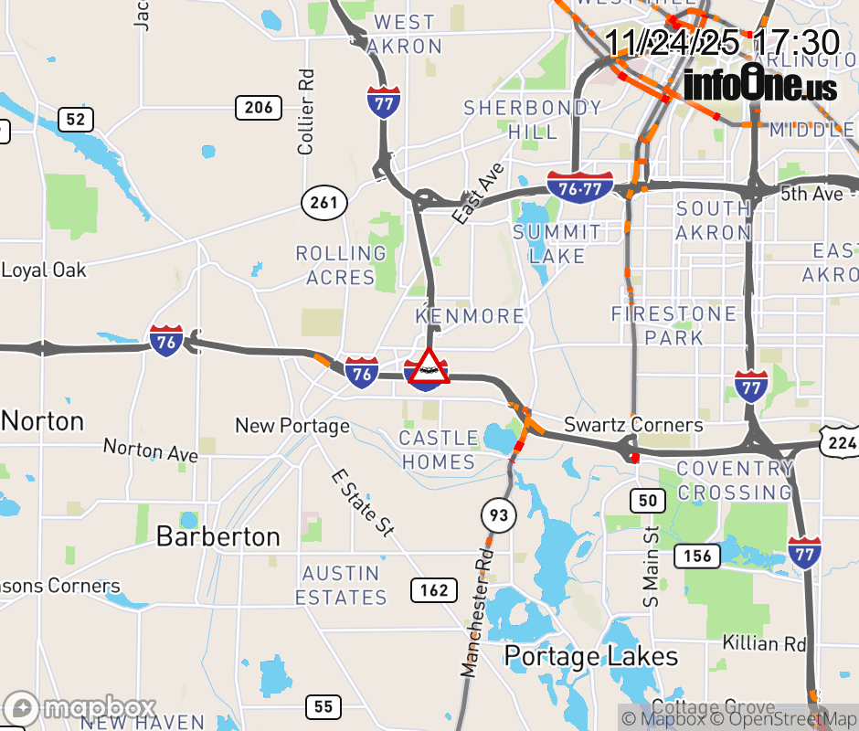 The right shoulder is blocked on I-76 East at I-277/US-224, due to a crash. ![]() |