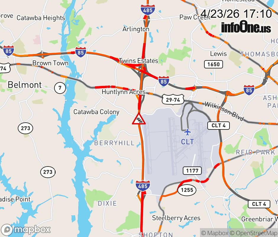 The right shoulder is closed before Exit 9 (US 74). Updated: Thu 4/23/26 5:10 PM EDT ![]() Updated: Thu 4/23/26 5:10 PM EDT |