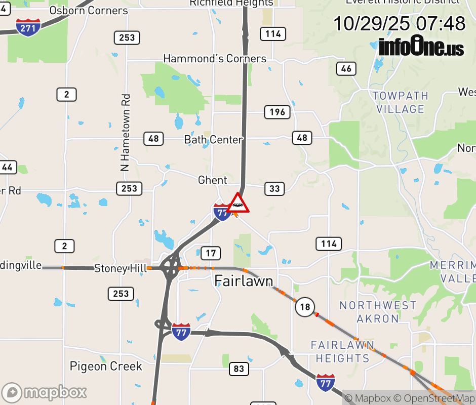 The right shoulder is blocked on I-77 North beyond Ghent Rd, due to a crash. ![]() |