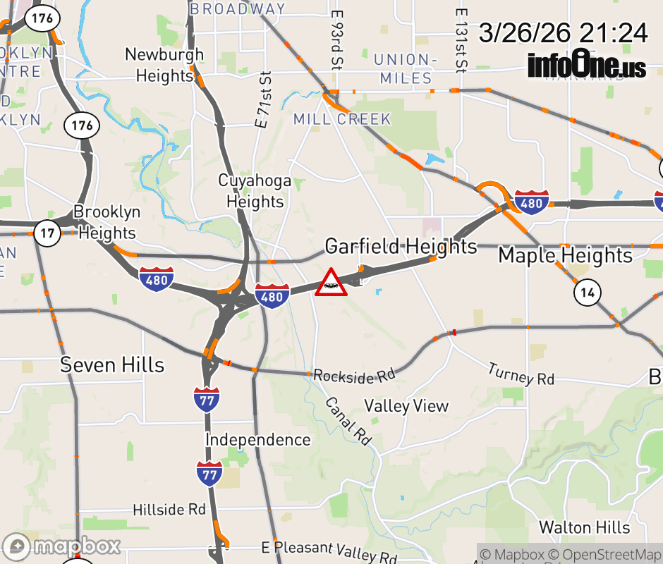 All lanes are closed on I-480 West Express beyond Transportation Blvd/E 98th St, due to a crash. ![]() |