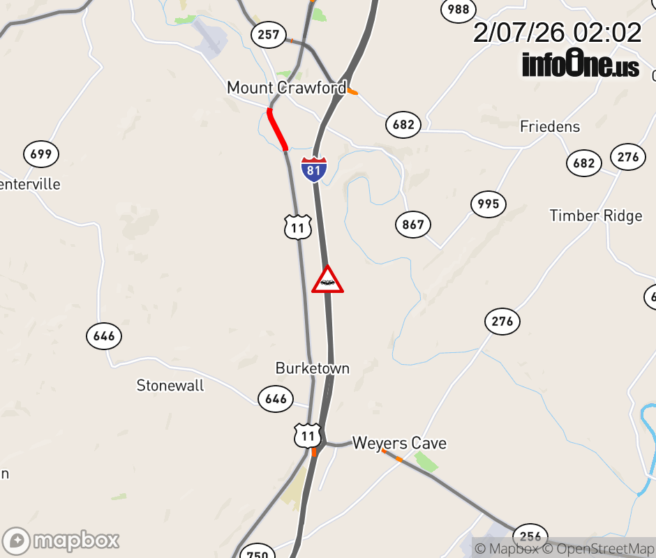 On I-81 North at mile marker 237.4 in the County of Rockingham, motorists can expect delays due to a vehicle crash. Updated: Sat 2/7/26 2:02 AM EST ![]() Updated: Sat 2/7/26 2:02 AM EST |