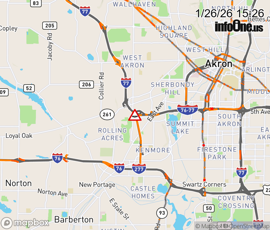 The right lane is blocked on Ramp I-77 South to I-76 West, due to a crash. ![]() |