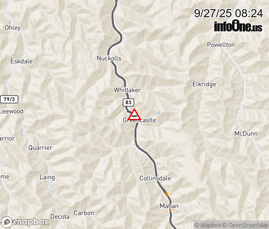 In Kanawha County there is a Vehicle Crash on I-77S Toll at Mile Marker 69. ![]() |