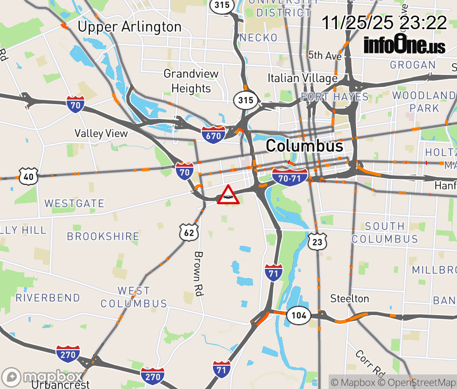 The right lane is blocked on I-70 West at Mound St, due to a crash. ![]() |