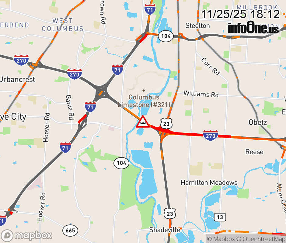 The right shoulder is blocked on I-270 West beyond US-23/S High St South, due to a crash. Updated: Tue 11/25/25 6:12 PM EST ![]() Updated: Tue 11/25/25 6:12 PM EST |