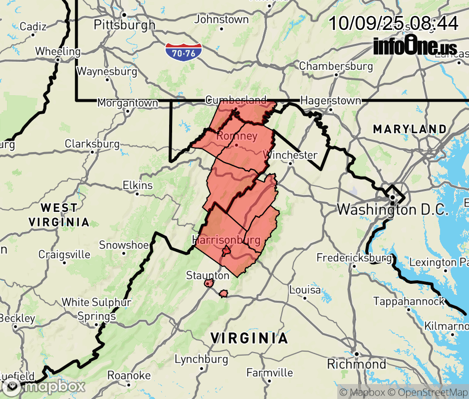 Canceled 10/9/25 12:00 PM Freeze Warning issued October 9 at 8:43AM EDT until October 10 at 9:00AM EDT by NWS Baltimore MD/Washington DC * WHAT... Sub-freezing temperatures as low as 31 expected. * WHERE... In Maryland, Central and Eastern Allegany County. In Virginia, Page, Shenandoah, Augusta, and Rockingham Counties. In West Virginia, Eastern Mineral, Hampshire, and Hardy Counties. * WHEN... From 2 AM to 9 AM EDT Friday. * IMPACTS... Frost and freeze conditions could kill crops, other sensitive vegetation and possibly damage unprotected outdoor plumbing. ![]() |