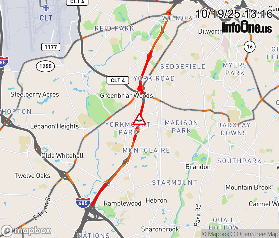 The right shoulder is closed before Exit 5 (Tyvola Rd). Updated: Sun 10/19/25 1:16 PM EDT ![]() Updated: Sun 10/19/25 1:16 PM EDT |