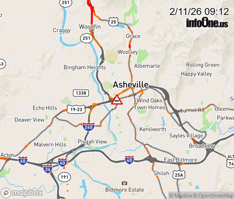 The right ramp lane is closed at Exit 4B, Patton Avenue. ![]() |