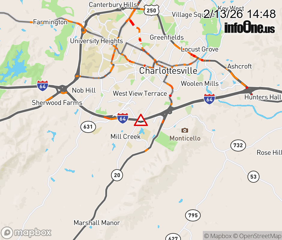 On I-64 at mile marker 121 in the County of Albemarle, motorists can expect delays due to a vehicle crash. The east left shoulder and left lane are closed. Updated: Fri 2/13/26 2:48 PM EST ![]() Updated: Fri 2/13/26 2:48 PM EST |