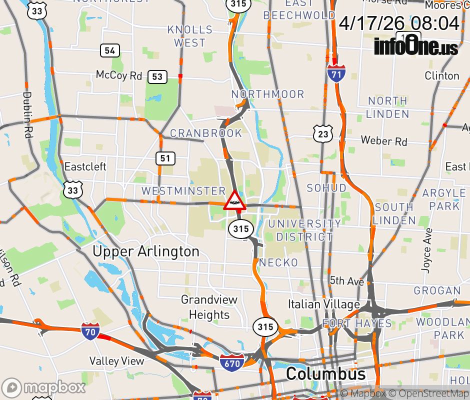 Expect lane closures on Ramp from OH-315 S to W Lane Ave, due to a crash. ![]() |