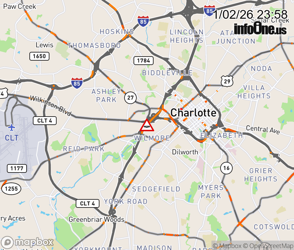 The left lane is closed at Exit 9 B (I-277). ![]() |