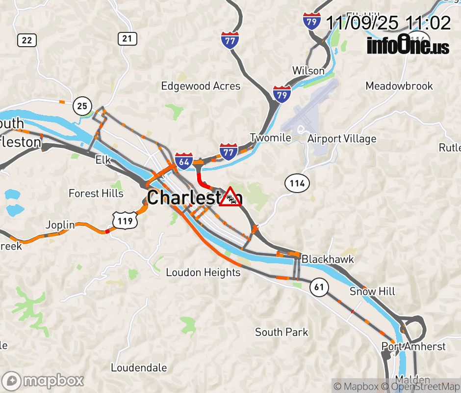 Congestion-Delay on I-77N at Mile Marker 100.0.Comments:Due to road work on I-64W. ![]() |