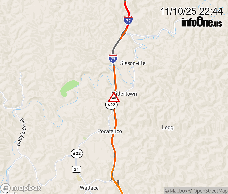 Canceled 11/11/25 1:14 AM Location: I-77 at MM 113.4, WV Accident.