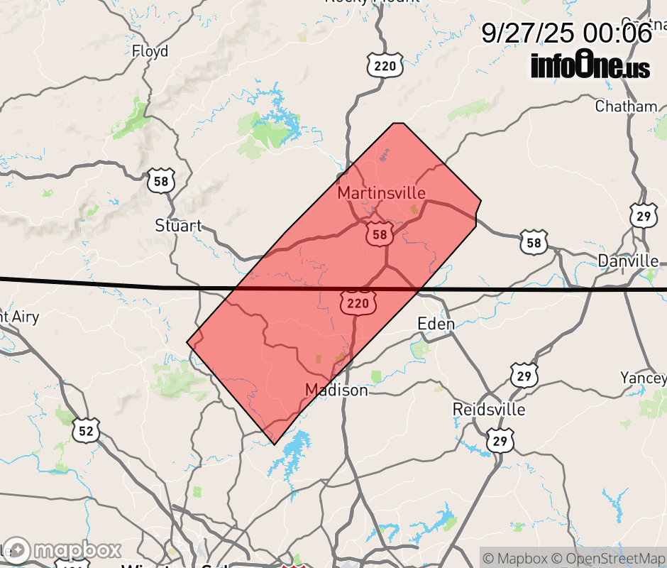 Canceled 9/27/25 4:21 AM Flood Advisory issued September 27 at 12:02AM EDT until September 27 at 4:30AM EDT by NWS Blacksburg VA * WHAT... Flooding caused by excessive rainfall is expected. * WHERE... Portions of north central North Carolina, including the following counties, Rockingham and Stokes and Virginia, including the following counties and independent city, City of Martinsville, Henry and Patrick. * WHEN... Until 430 AM EDT. * IMPACTS... Minor flooding in low-lying and poor drainage areas. * ADDITIONAL DETAILS... - At 1202 AM EDT, Doppler radar indicated heavy rain due to thunderstorms. Minor flooding is ongoing or expected to begin shortly in the advisory area. Between 1 and 2 inches of rain have fallen. - This includes the following streams and drainages... Bull Run, Bassett Branch, Beaver Creek, Cascade Creek, Buffalo Creek, Baker Branch, Dan River, Crooked Creek and Big Beaver Island Creek. Additional rainfall amounts of 1 to 1.5 inches are expected over the area. This additional rain will result in minor flooding. - Some locations that will experience flooding include... Martinsville... Mayodan... Madison... Stoneville... Spencer... Sandy Ridge... Axton... - For flooding safety information, please visit http://www.weather.gov/safety/flood ![]() |