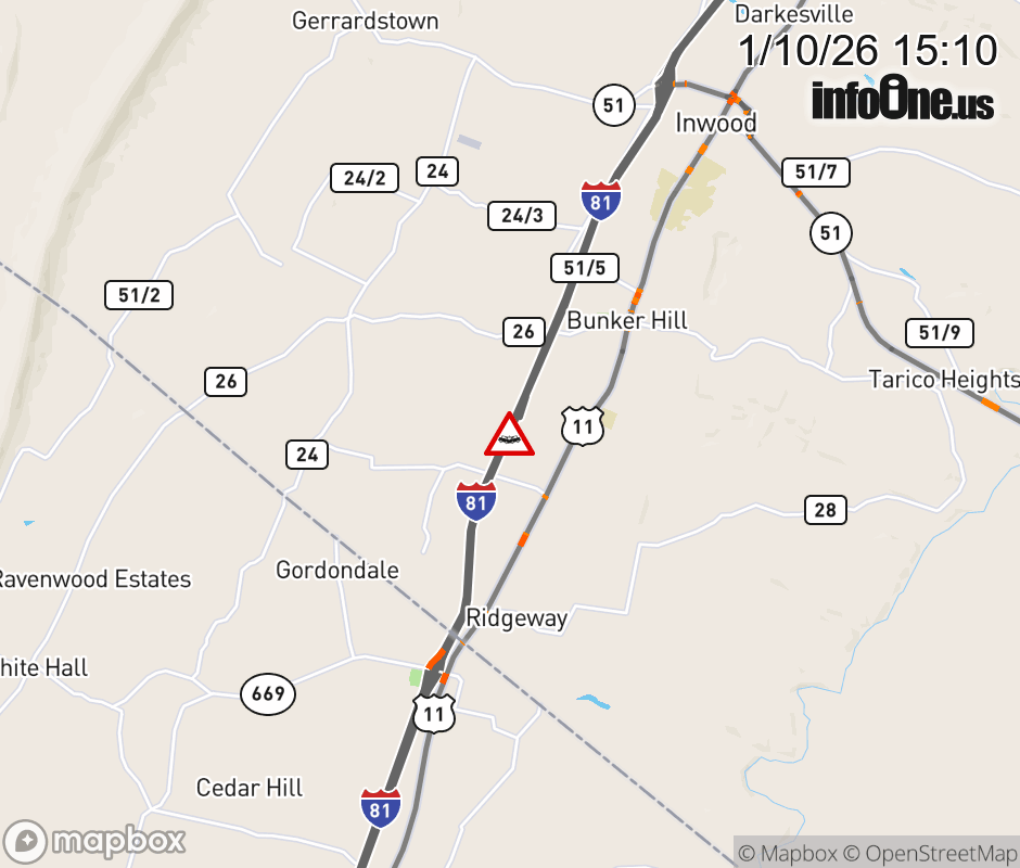 Vehicle Crash on I-81N at Mile Marker 1.8. Updated: Sat 1/10/26 3:10 PM EST ![]() Updated: Sat 1/10/26 3:10 PM EST |