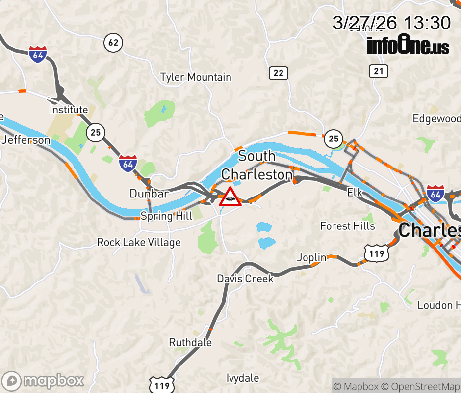 Vehicle Crash on I-64E at Mile Marker 54.0. The eastbound right lane is closed. Updated: Fri 3/27/26 1:30 PM EDT ![]() Updated: Fri 3/27/26 1:30 PM EDT |