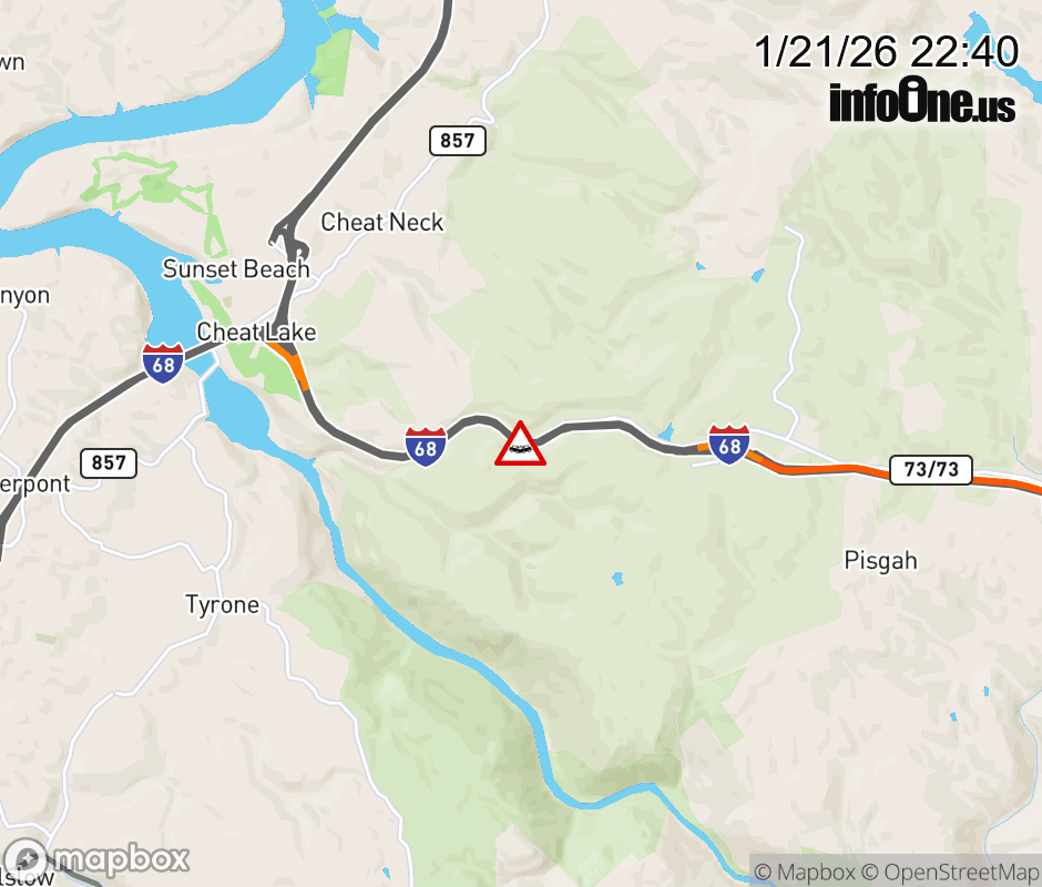Vehicle Crash on I-68E at Mile Marker 13.0. ![]() |