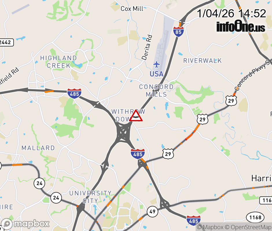 The right shoulder has reopened at Exit 48 (I-485 Outer). Updated: Sun 1/4/26 2:52 PM EST ![]() Updated: Sun 1/4/26 2:52 PM EST |