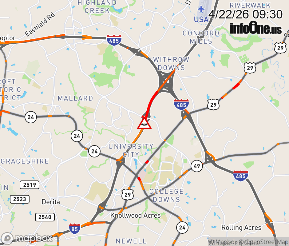 The left lane is closed at Exit 46 (Mallard Creek Church Rd.). ![]() |