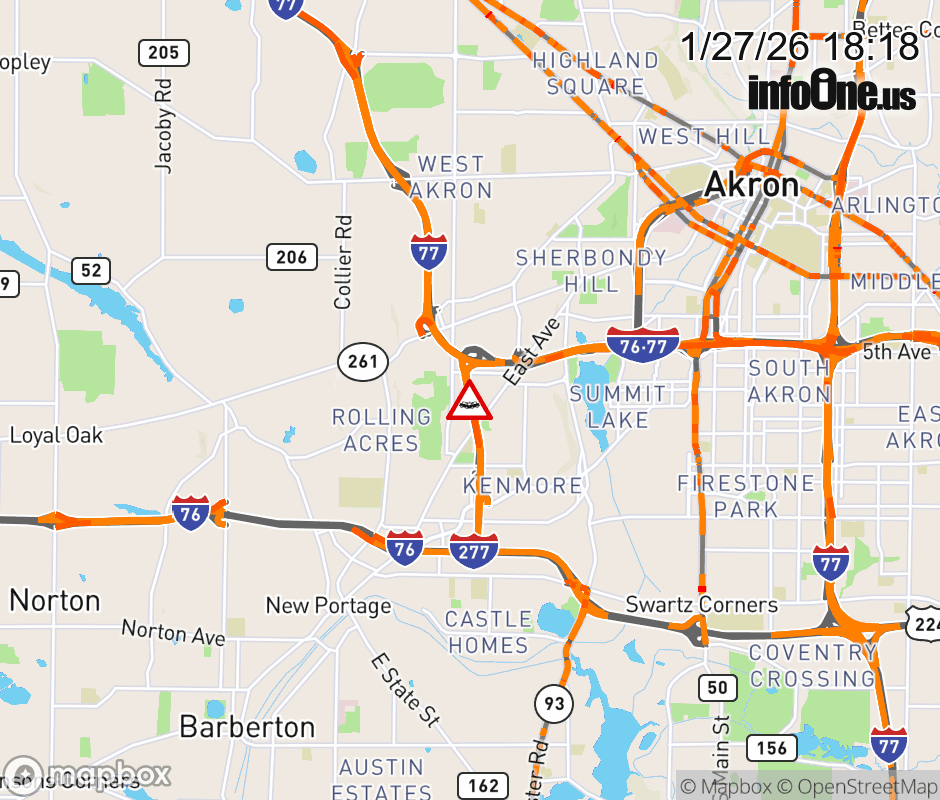 Canceled 1/27/26 7:18 PM Location: I-76 West at MM 20.2, OH Accident.
