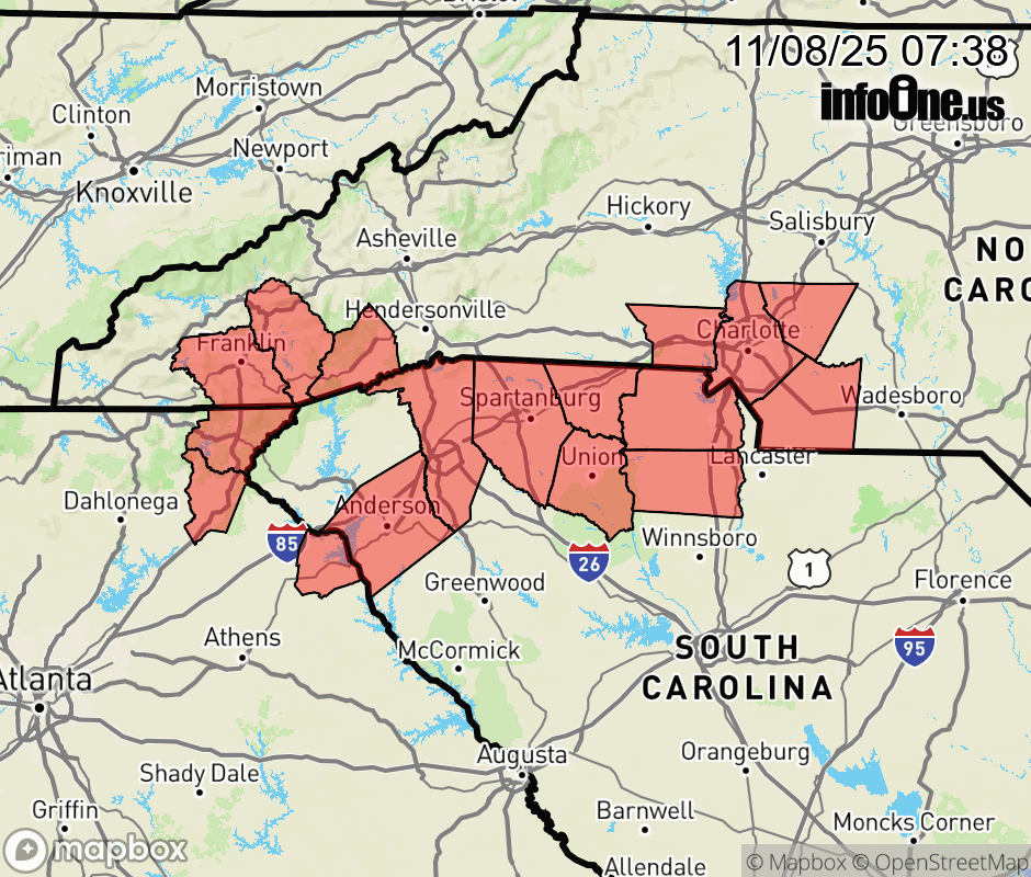 Canceled 11/8/25 10:00 AM Special Weather Statement issued November 8 at 7:36AM EST by NWS Greenville-Spartanburg SC Patchy dense fog has formed this morning across the southern mountains of North Carolina, and across portions of the Piedmont of the Carolinas and northeast Georgia. The fog is more widespread in the foothills and across the Piedmont north and west of Charlotte, where a Dense Fog Advisory is in effect. Much of the fog should lift by 10 AM. Use caution if traveling this morning. Take it slow, use low-beam headlights, and leave plenty of space between you and other vehicles. Allow extra time to reach your destination. ![]() |