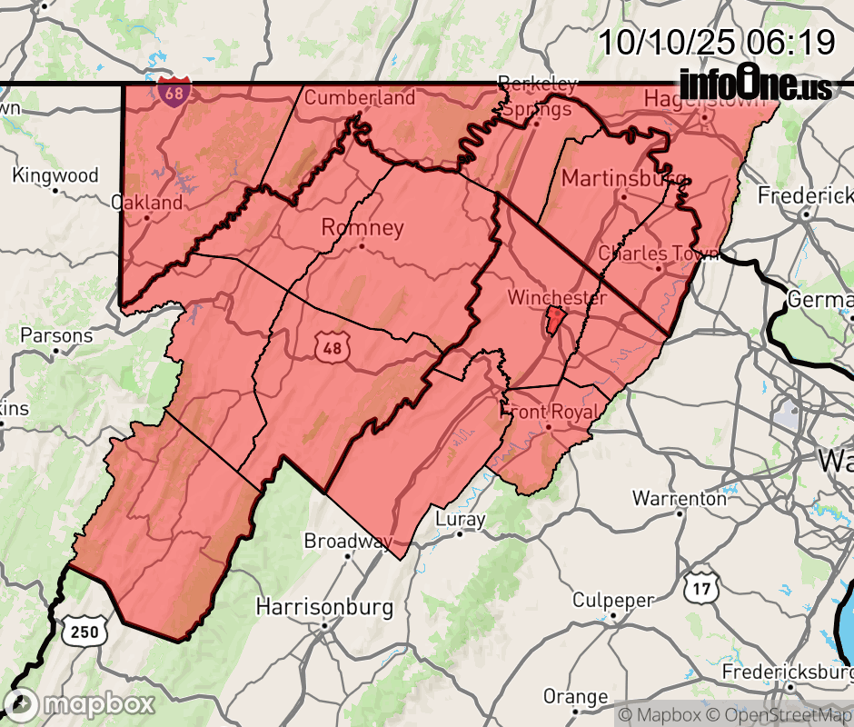 Canceled 10/10/25 8:36 AM Freeze Warning issued October 10 at 6:18AM EDT until October 10 at 9:00AM EDT by NWS Baltimore MD/Washington DC * WHAT... Sub-freezing temperatures as low as 28. * WHERE... Portions of north central and western Maryland, northwest Virginia, and eastern and panhandle West Virginia. * WHEN... Until 9 AM EDT this morning. * IMPACTS... Frost and freeze conditions could kill crops, other sensitive vegetation and possibly damage unprotected outdoor plumbing. ![]() |