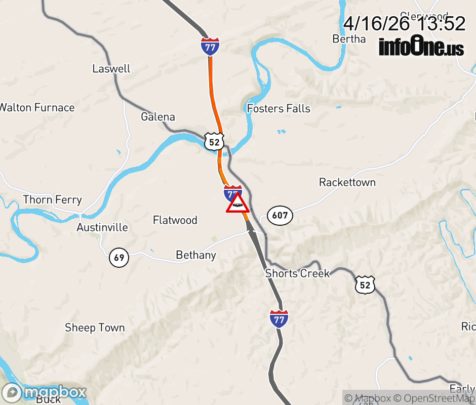 On I-77 South at mile marker 25 in the County of Wythe, motorists can expect delays due to a vehicle crash. Updated: Thu 4/16/26 1:52 PM EDT ![]() Updated: Thu 4/16/26 1:52 PM EDT |