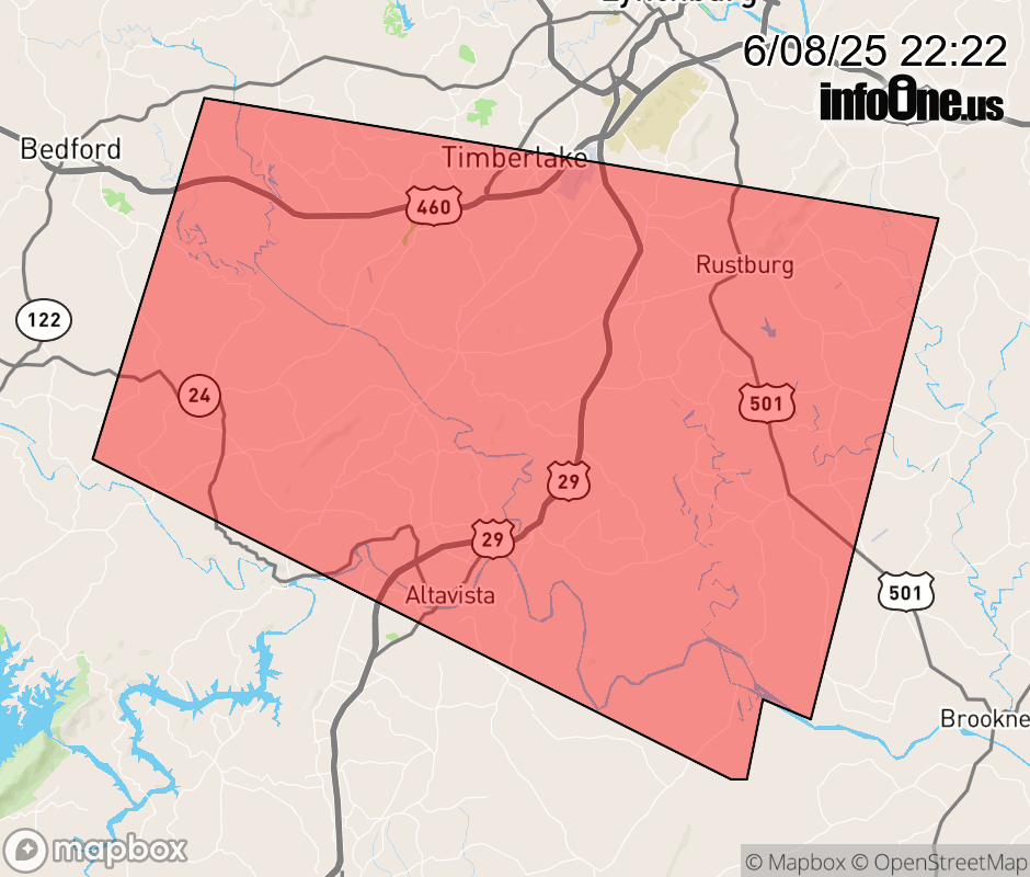 Canceled 6/8/25 10:52 PM Severe Thunderstorm Warning issued June 8 at 10:20PM EDT until June 8 at 11:15PM EDT by NWS Blacksburg VA SVRRNK The National Weather Service in BLACKSBURG has issued a * Severe Thunderstorm Warning for... Central Campbell County in central Virginia... Northeastern Pittsylvania County in south central Virginia... Southeastern Bedford County in south central Virginia... * Until 1115 PM EDT. * At 1020 PM EDT, a severe thunderstorm was located near Huddleston, moving east at 15 mph. HAZARD...60 mph wind gusts and quarter size hail. SOURCE...Radar indicated. IMPACT...Hail damage to vehicles is expected. Expect wind damage to roofs, siding, and trees. * Locations impacted include... Altavista... Hurt... Evington... Rustburg... Huddleston... Forest... and Hodges. ![]() |