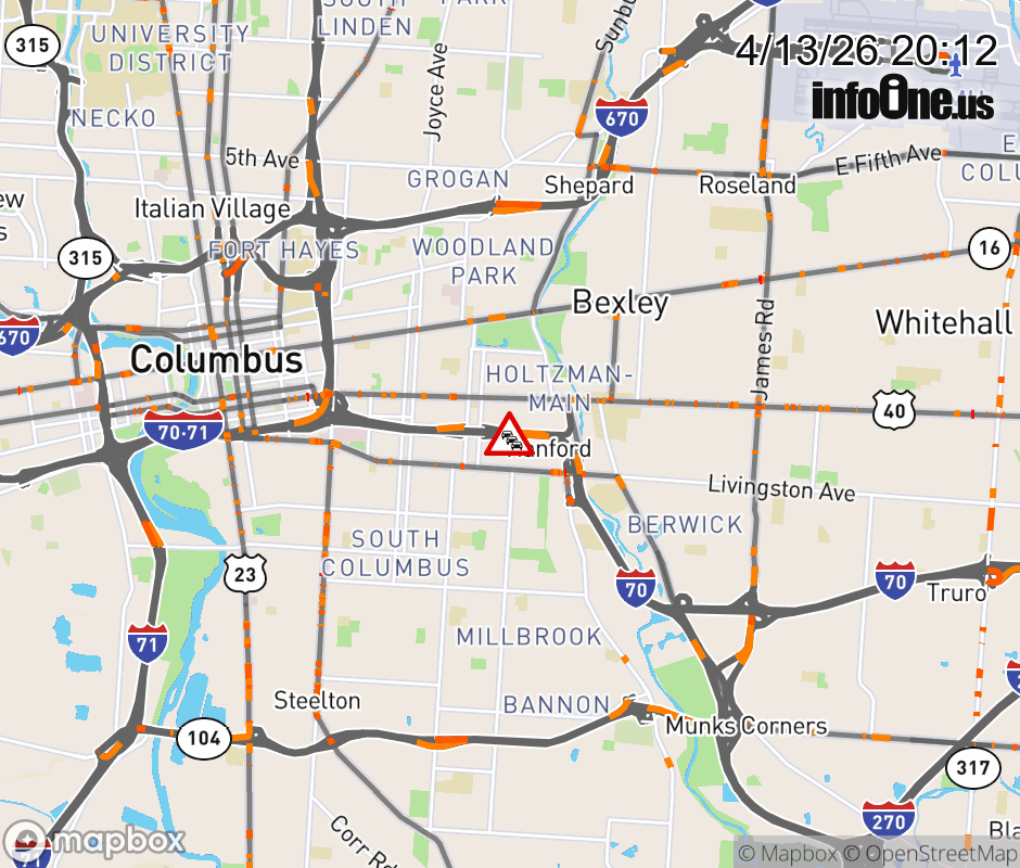 The 2 right lanes are blocked on I-70 East beyond Miller Ave/Kelton Ave, due to repairs/maintenance. ![]() |
