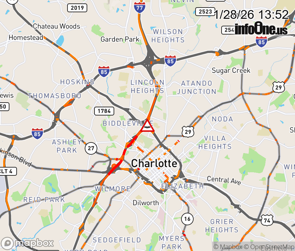 The right lane is closed past Exit 11 (I-277). Updated: Wed 1/28/26 1:52 PM EST ![]() Updated: Wed 1/28/26 1:52 PM EST |