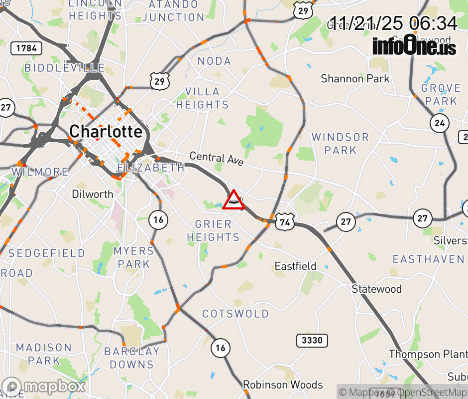 Canceled 11/21/25 7:20 AM Location: Independence Blvd (US-74E) at MM 244, NC Vehicle Crash.
