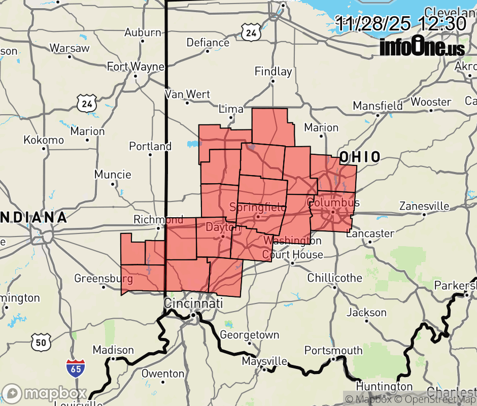 Winter Weather Advisory issued November 28 at 12:28PM EST until November 30 at 9:00AM EST by NWS Wilmington OH * WHAT... Snow expected. Total snow accumulations between 1 and 4 inches. Winds gusting as high as 35 mph. * WHERE... Portions of East Central and Southeast Indiana and Central, Southwest, and West Central Ohio. * WHEN... From 7 AM Saturday to 9 AM EST Sunday. * IMPACTS... Roads, and especially bridges and overpasses, will likely become slick and hazardous. Plan on slippery road conditions. ![]() |