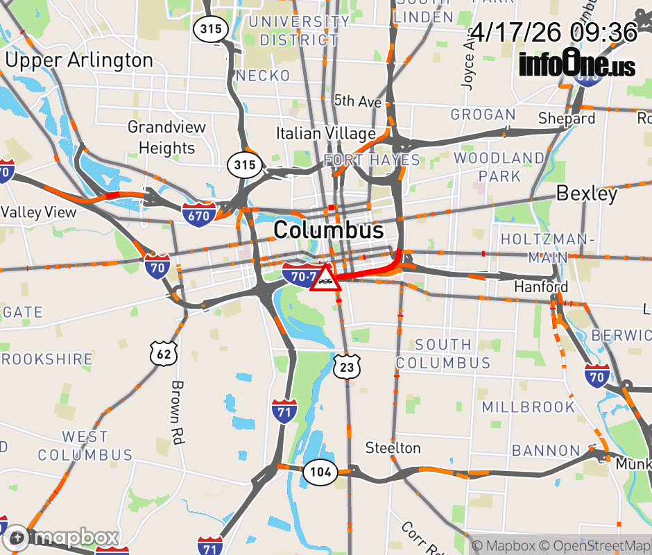 Expect lane closures on I-70 West/I-71 South beyond I-71/I-70 Split, due to a disabled vehicle. ![]() |