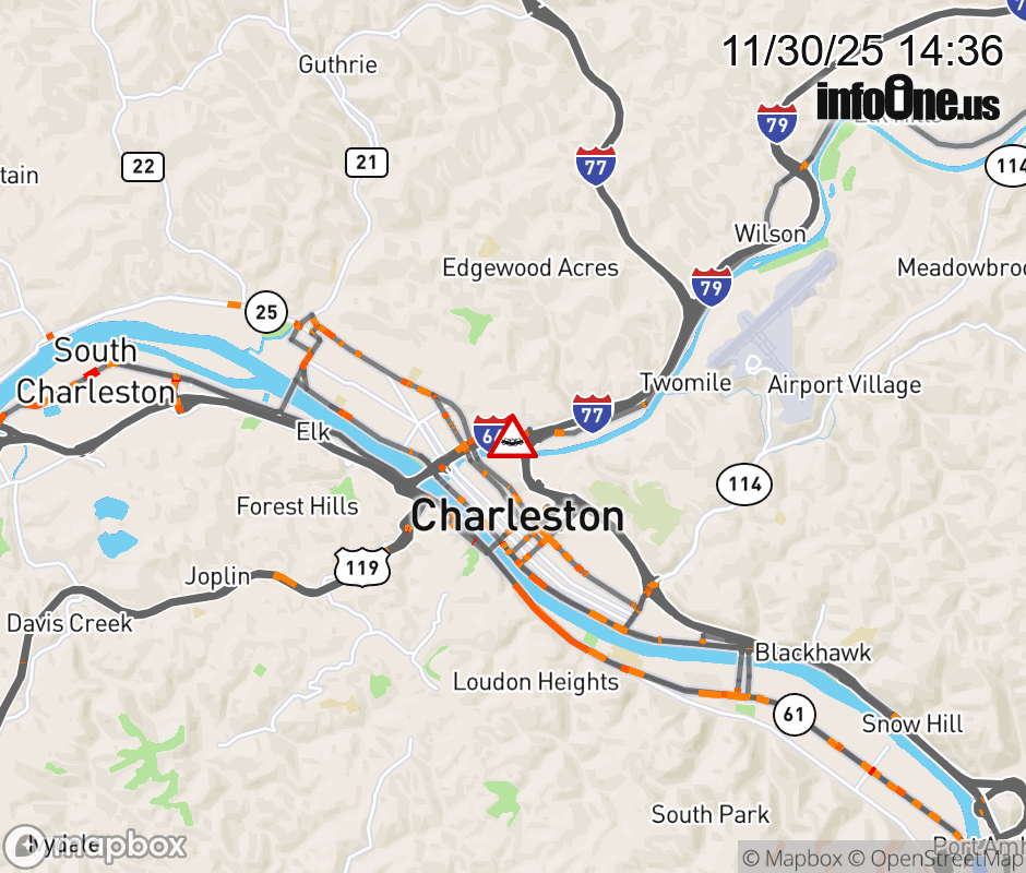Vehicle Crash on I-64W at Mile Marker 58.5. Comments:I-64 W / I-77 S Split. Updated: Sun 11/30/25 2:36 PM EST ![]() Updated: Sun 11/30/25 2:36 PM EST |