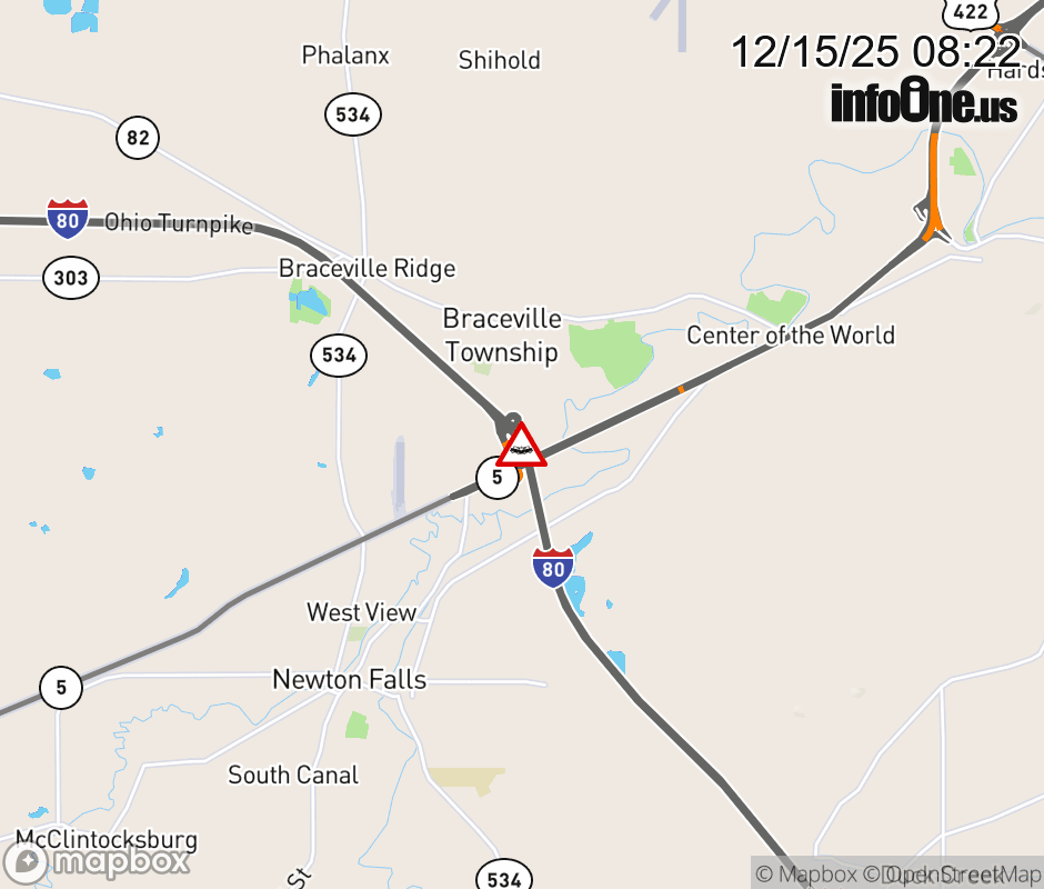 Expect lane closures on I-80 East (Ohio Turnpike) beyond SR-5, due to a crash. ![]() |