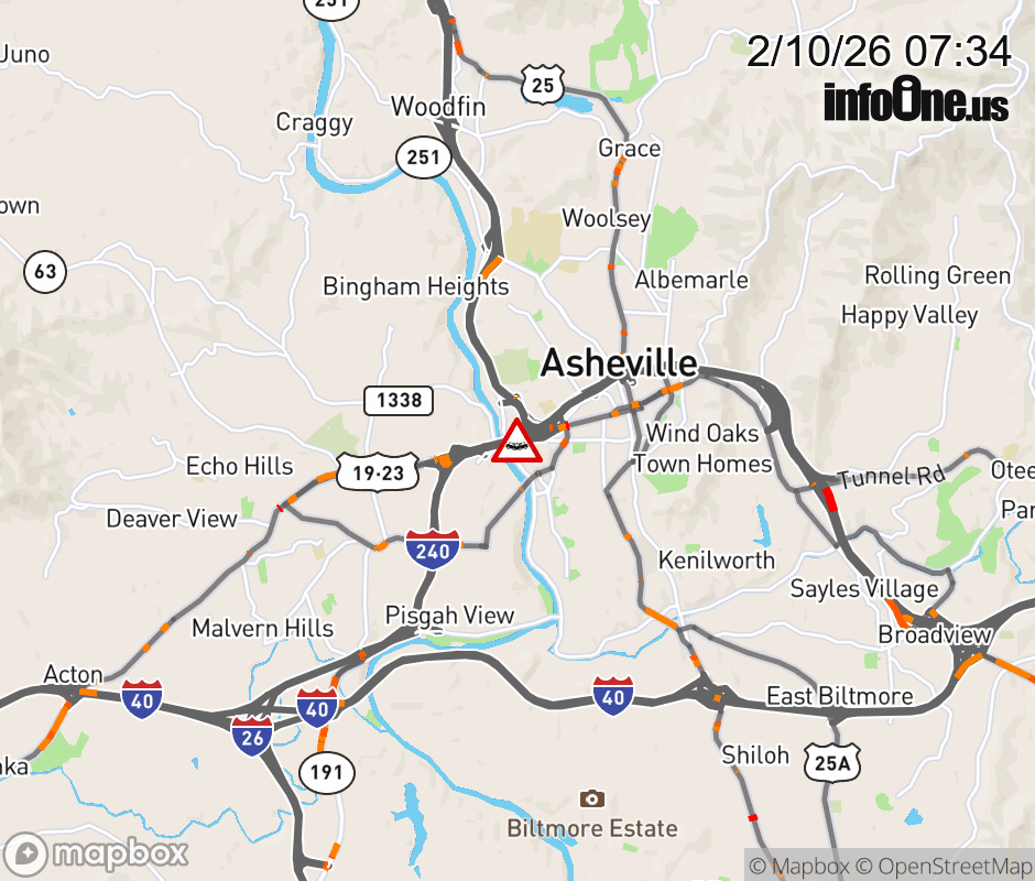 The left lane is closed near Exit 4B (Patton Avenue). ![]() |
