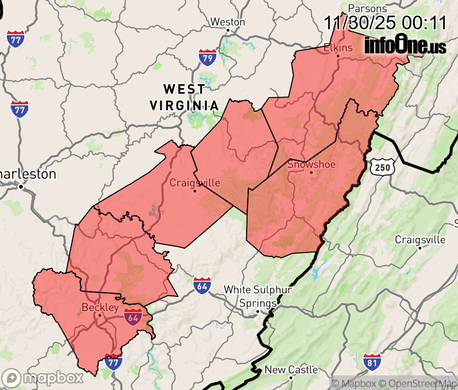 Winter Weather Advisory issued November 30 at 12:09AM EST until November 30 at 12:00PM EST by NWS Charleston WV * WHAT... Mixed precipitation expected. Total snow accumulations up to one inch and ice accumulations of a light glaze. Winds gusting as high as 35 mph. * WHERE... Portions of northeast and southeast West Virginia. * WHEN... Until noon EST today. * IMPACTS... Plan on slippery road conditions. ![]() |