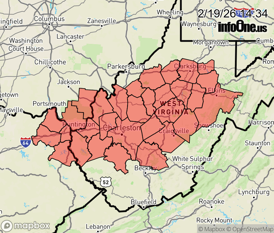 Flood Watch issued February 19 at 2:33PM EST until February 20 at 7:00AM EST by NWS Charleston WV * WHAT... Flooding caused by excessive rainfall continues to be possible. * WHERE... Portions of northeast Kentucky, including the following counties, Boyd, Carter, Greenup and Lawrence, southeast Ohio, including the following counties, Gallia and Lawrence OH, and West Virginia, including the following counties, Barbour, Boone, Braxton, Cabell, Calhoun, Clay, Doddridge, Gilmer, Harrison, Jackson WV, Kanawha, Lewis, Lincoln, Mason, Northwest Fayette, Northwest Nicholas, Northwest Randolph, Northwest Webster, Putnam, Ritchie, Roane, Southeast Fayette, Southeast Nicholas, Southeast Randolph, Southeast Webster, Taylor, Upshur, Wayne and Wirt. * WHEN... Through Friday morning. * IMPACTS... Creeks and streams may rise out of their banks. Area creeks and streams are running high and could flood with more heavy rain. * ADDITIONAL DETAILS... - Quick hitting rainfall amounts of 0.75 to 1.00 inch are expected within strong thunderstorms. Combined with already elevated streamflows, this poses a threat for localized flooding. Additionally, elevations above 3,500 feet will see the added hydrologic element of snow and ice melt further contributing to river and stream rises. - http://www.weather.gov/safety/flood ![]() |
