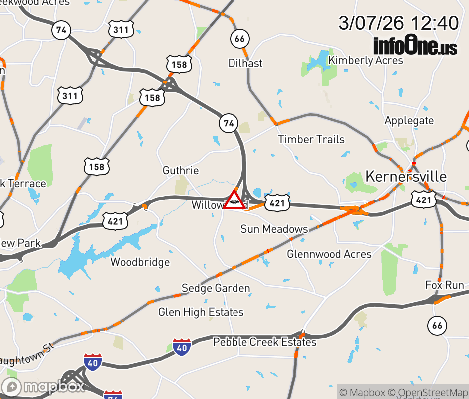 The left ramp lane is closed on I-74 on ramp to US 421. ![]() |