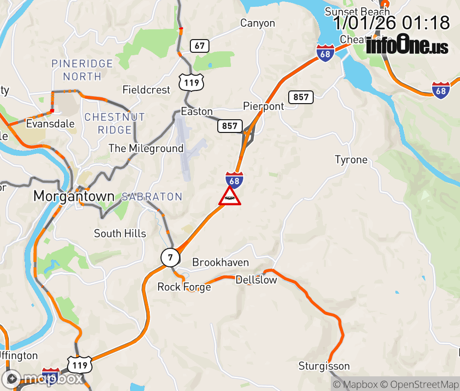 Location: I-68 at MM 6.0, WV Accident.
