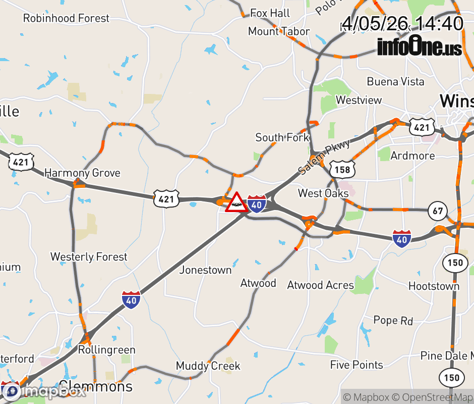The both ramp lanes are closed near Exit 238 (I-40). Updated: Sun 4/5/26 2:40 PM EDT ![]() Updated: Sun 4/5/26 2:40 PM EDT |