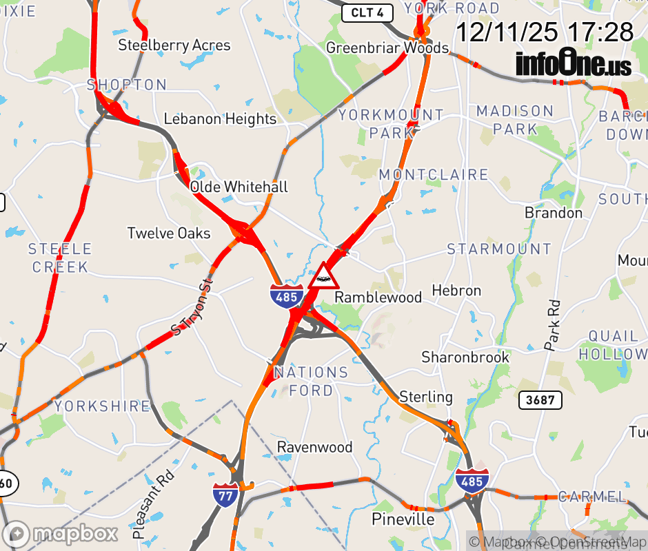 The left two lanes are closed inside the collector at Exit 3 (Arrowood Road). ![]() |