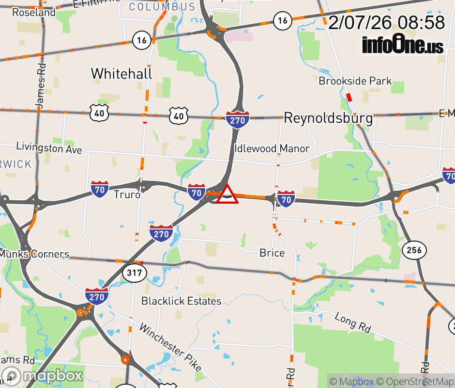 Ramp I-70 West to I-270 North CLOSED because of a crash. ![]() |