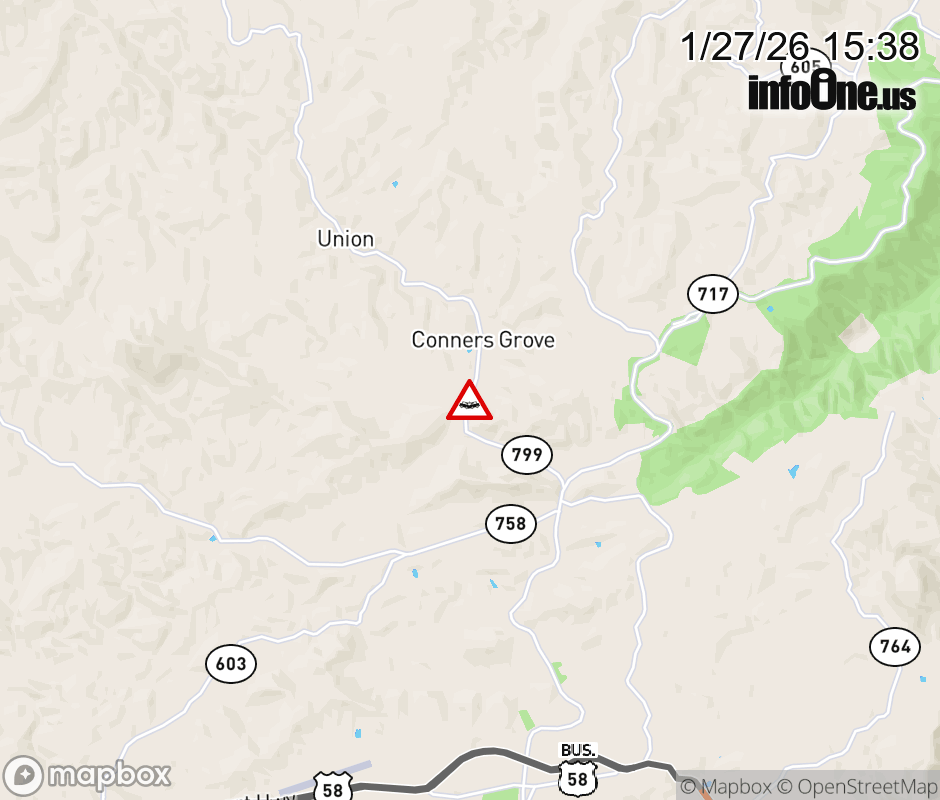 On Rt. 799 North in the County of Floyd, in the vicinity of Halls Store Rd; Rt. 604E/W (Floyd County), motorists can expect delays due to a vehicle crash. Lane closures exist. Updated: Tue 1/27/26 3:38 PM EST ![]() Updated: Tue 1/27/26 3:38 PM EST |