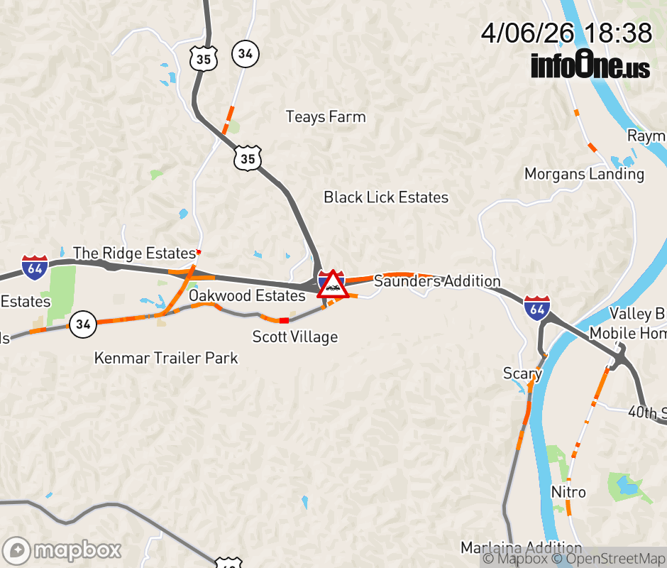 Disabled Vehicle on I-64W at Mile Marker 40.5. Updated: Mon 4/6/26 6:38 PM EDT ![]() Updated: Mon 4/6/26 6:38 PM EDT |