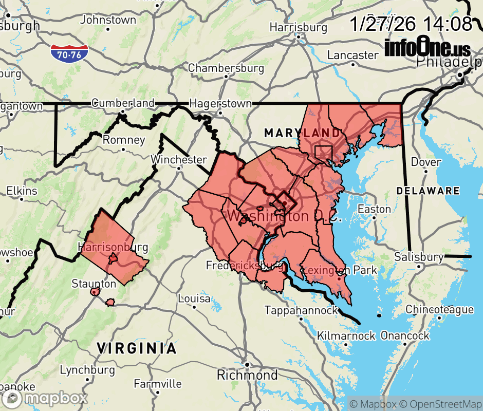 Canceled 1/27/26 9:58 PM Cold Weather Advisory issued January 27 at 2:06PM EST until January 28 at 11:00AM EST by NWS Baltimore MD/Washington DC * WHAT... Very cold wind chills between 0 and 8 below expected. * WHERE... Washington DC, and portions of central, northeast, northern, and southern Maryland, and central, northern, and western Virginia. * WHEN... From 7 PM this evening to 11 AM EST Wednesday. * IMPACTS... The cold wind chills could result in hypothermia if precautions are not taken. Frostbite will occur if unprotected skin is exposed to these temperatures. * ADDITIONAL DETAILS... Additional Cold Weather Headlines are expected at times through the end of the week as the region remains in an Arctic Airmass. ![]() |