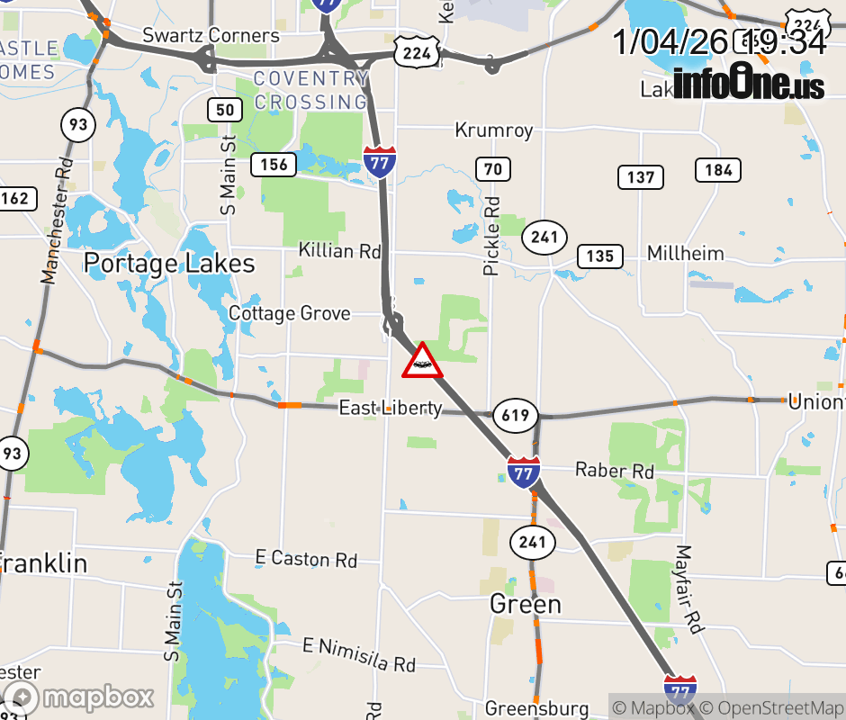 Expect lane closures on I-77 North beyond SR-241/Massillon Rd, due to a crash. ![]() |