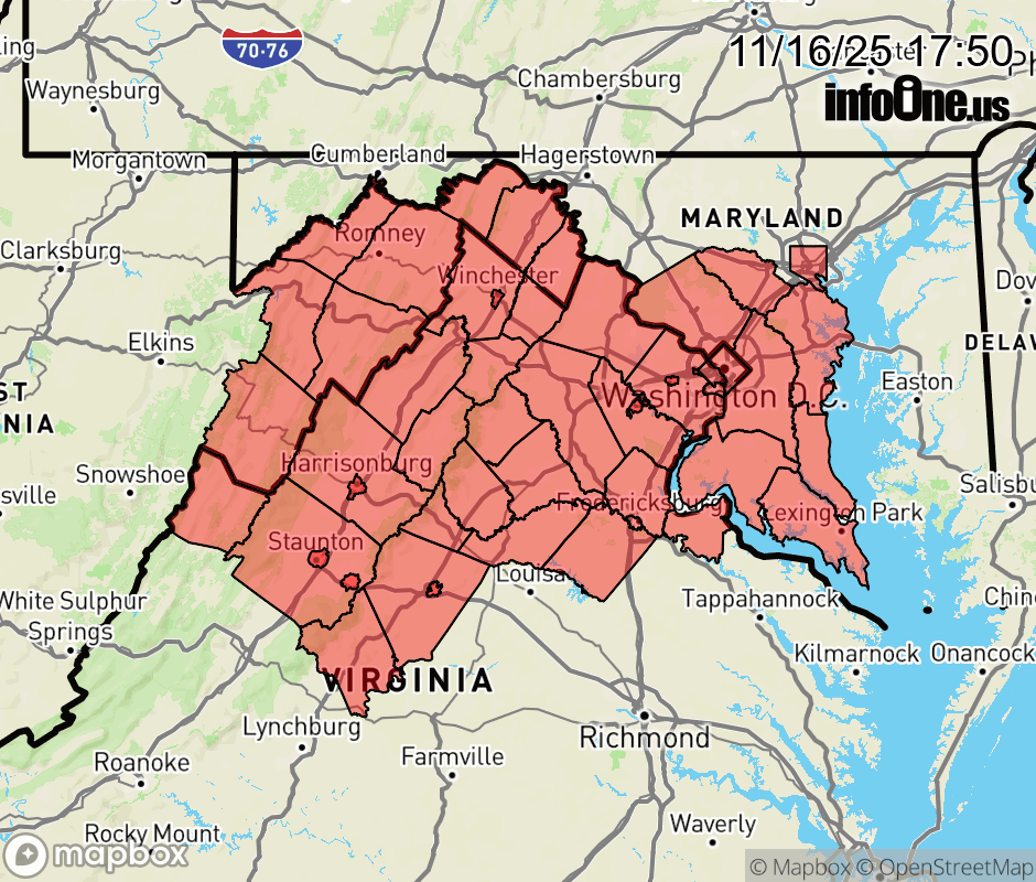 Canceled 11/16/25 6:00 PM Red Flag Warning issued November 16 at 5:48PM EST until November 16 at 6:00PM EST by NWS Baltimore MD/Washington DC Winds are starting to decrease and relative humidity values are starting to rebound. As a result, the Red Flag Warning will expire at 6 PM. ![]() |