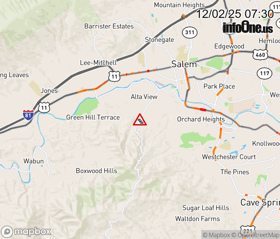 On Rt. 694 in the County of Roanoke, in the vicinity of Mowles Rd, motorists can expect delays due to weather. All north lanes are closed. All south lanes are closed. ![]() |